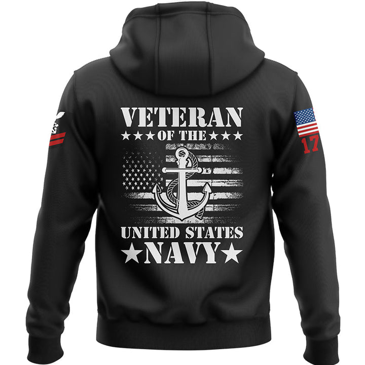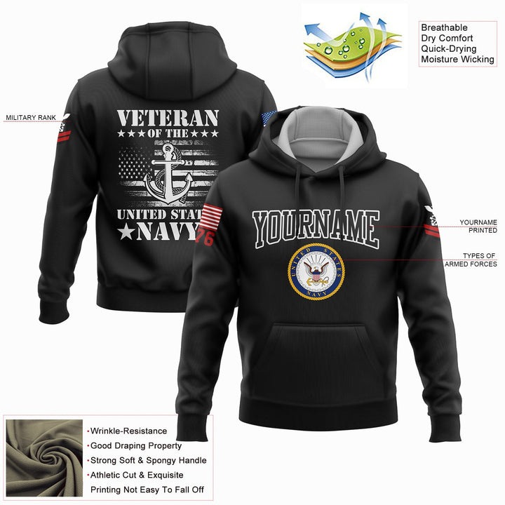 Custom Black Veteran 1776 American Flag U.S Navy Military Rank Name Hoodie