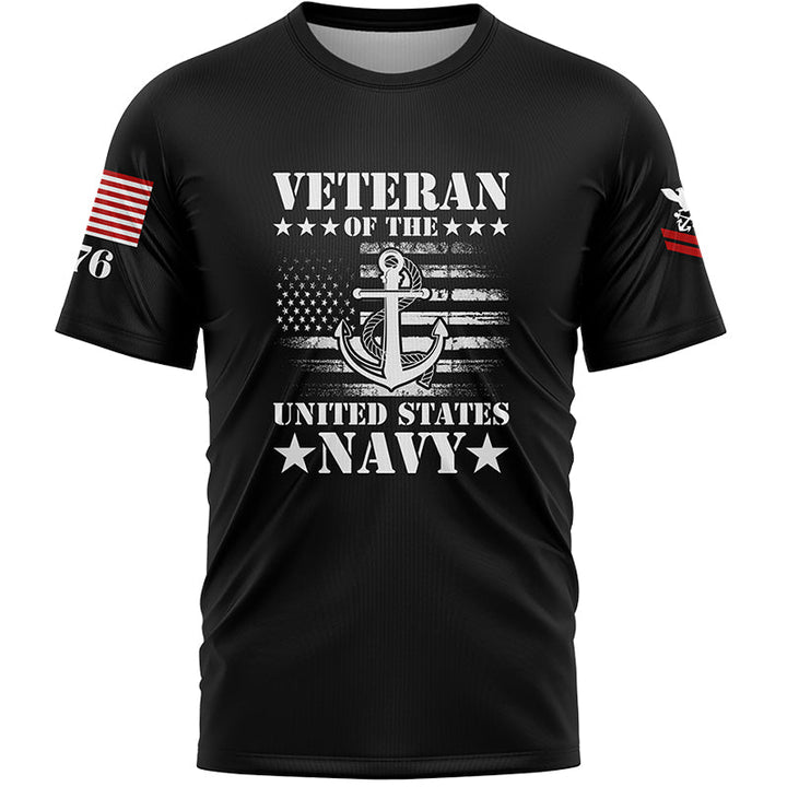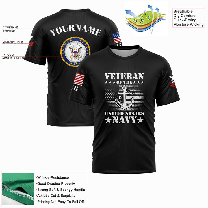 Custom Black Veteran 1776 American Flag U.S Navy Military Rank Name T-Shirt