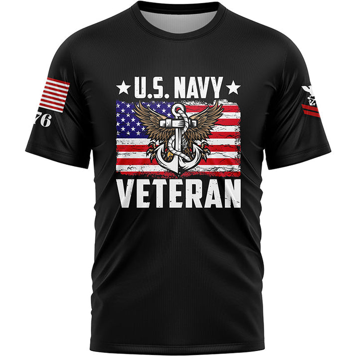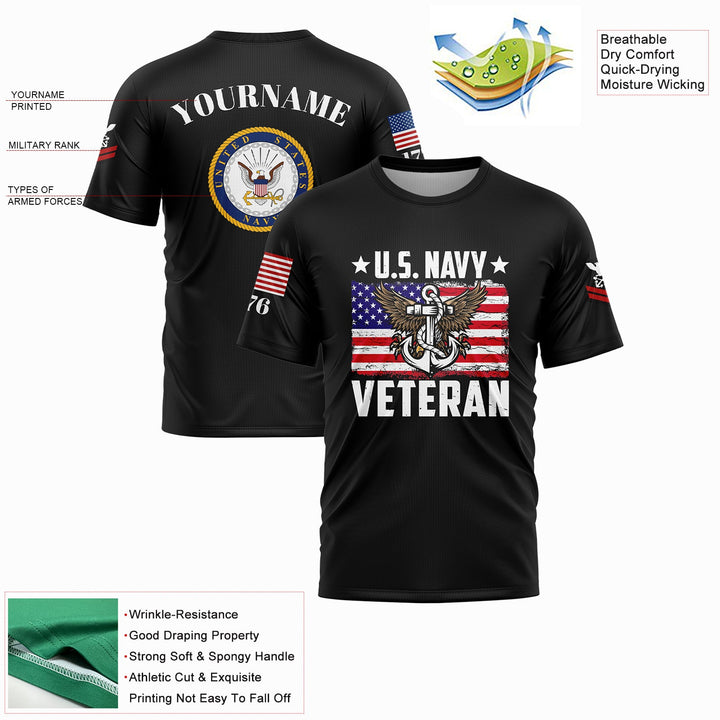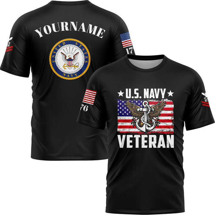 Custom Black Veteran 1776 American Flag U.S Navy Military Rank Name T-Shirt