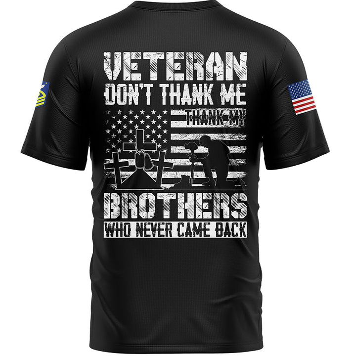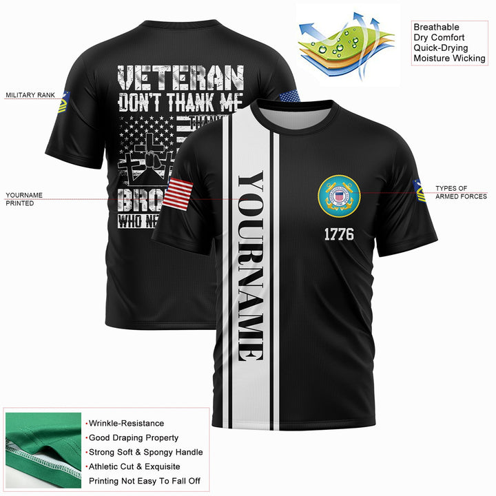 Custom Black Veteran Don't Thank Me Thank My Brothers Who Never Came Back 1776 Flag U.S Coast Guard Military Rank Name Veterans Day T-Shirt | Father's Day Gifts