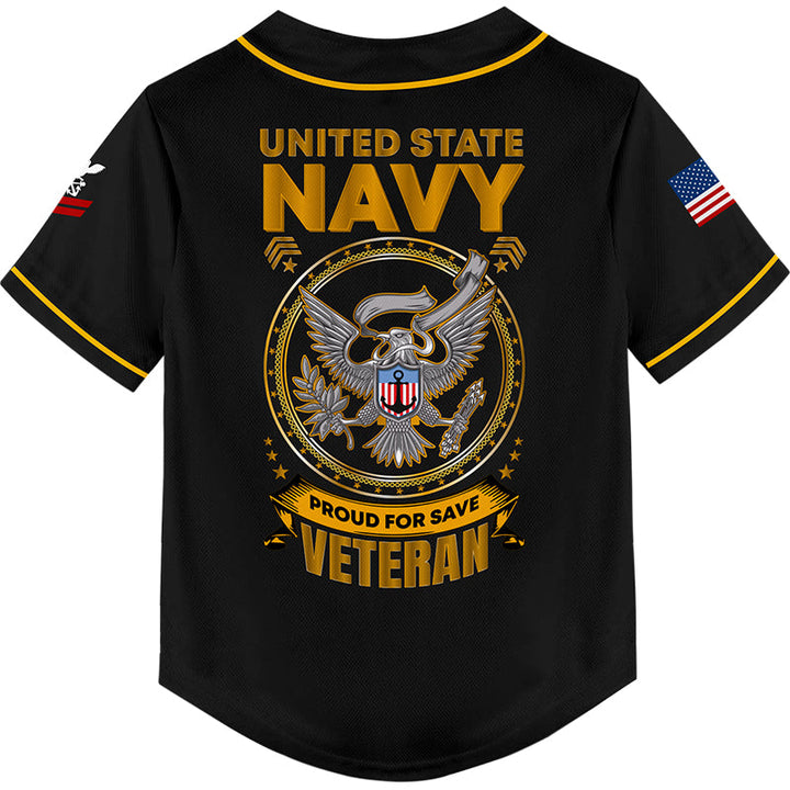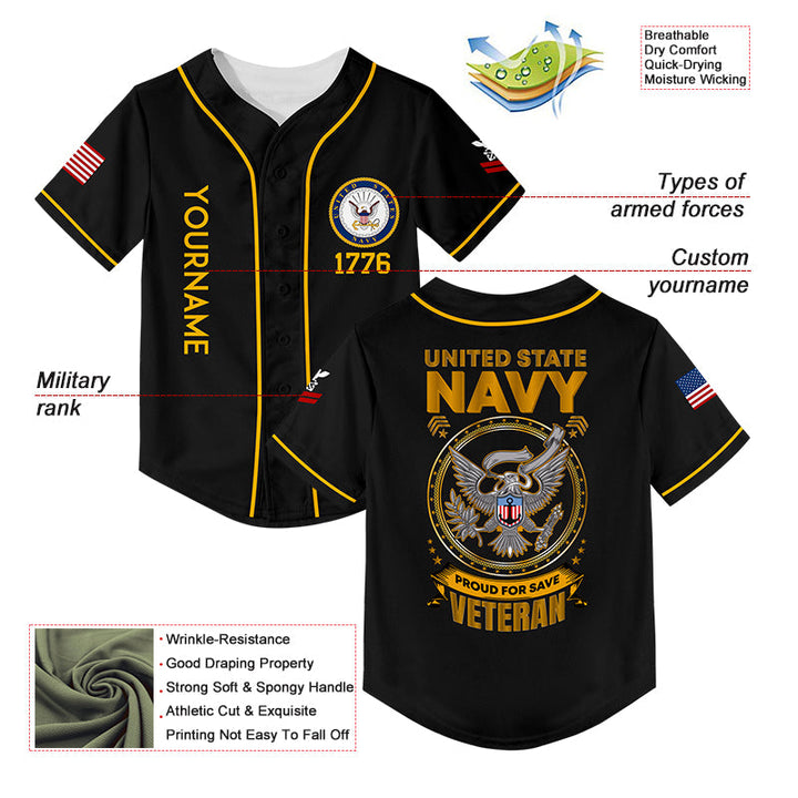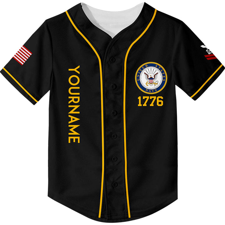 Custom Black Veterans 1776 American Flag U.S Navy Military Rank Name Baseball Jersey