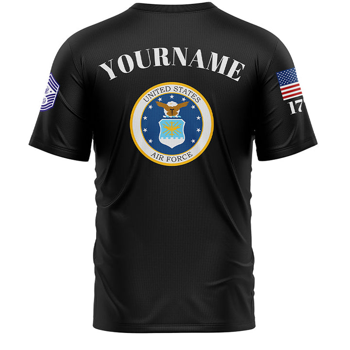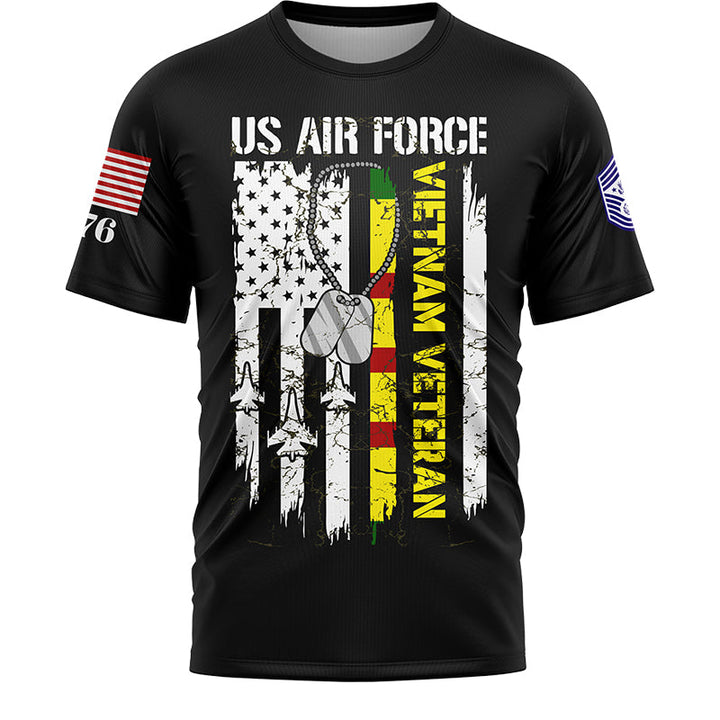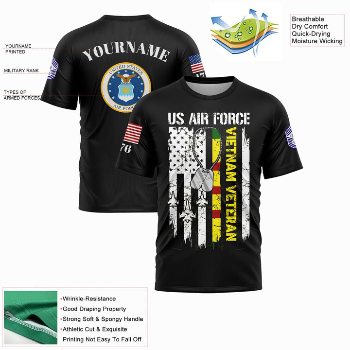 Custom Black Vietnam Veteran 1776 American Flag U.S Air Force Military Rank Name Veterans Day T-Shirt