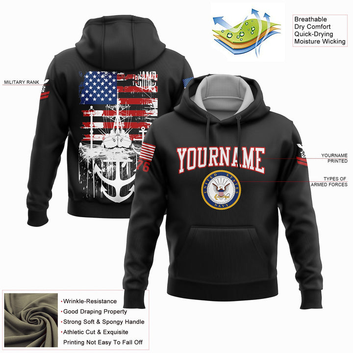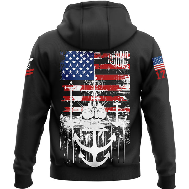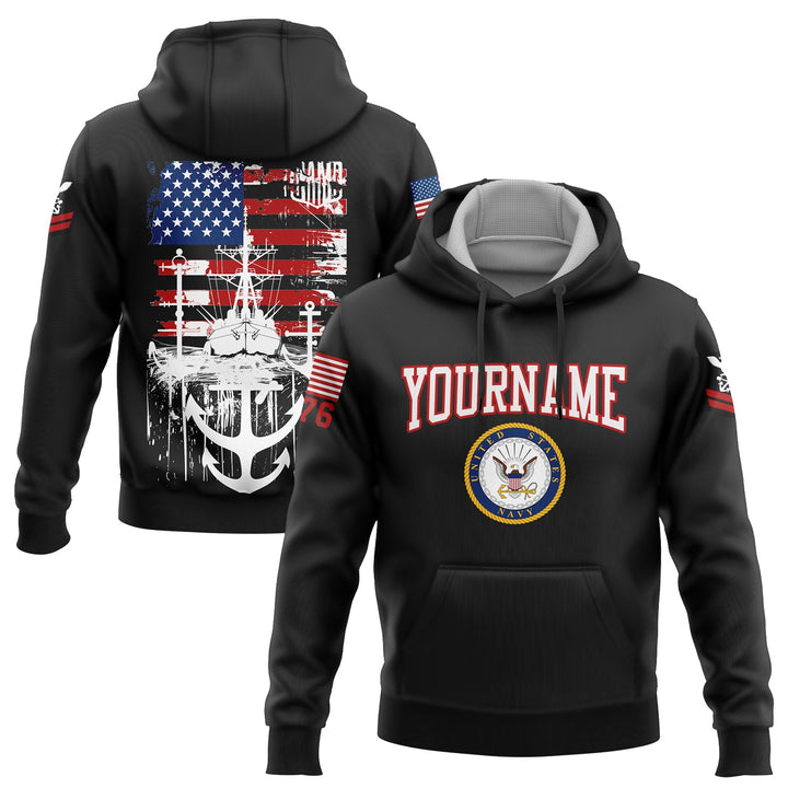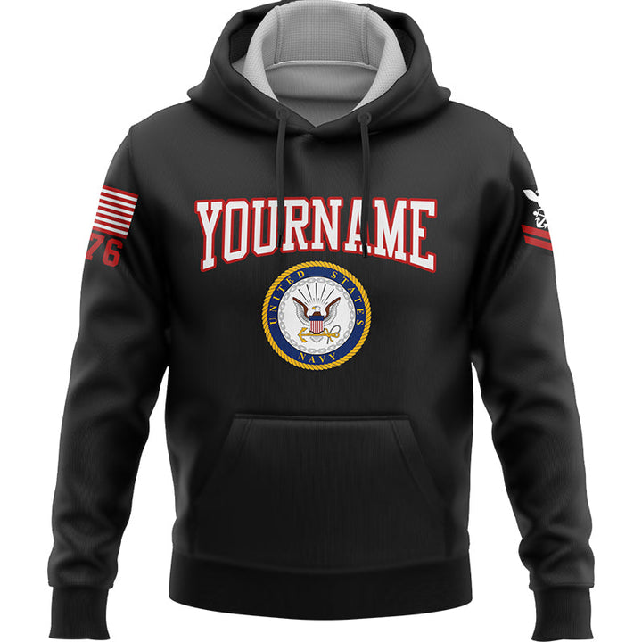 Custom Black Warship 1776 American Flag U.S Navy Military Rank Name Hoodie