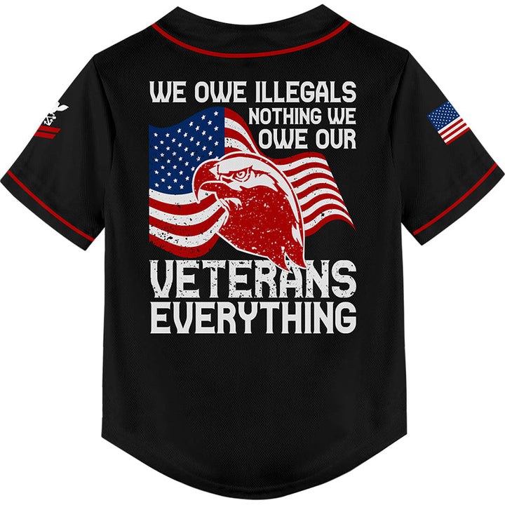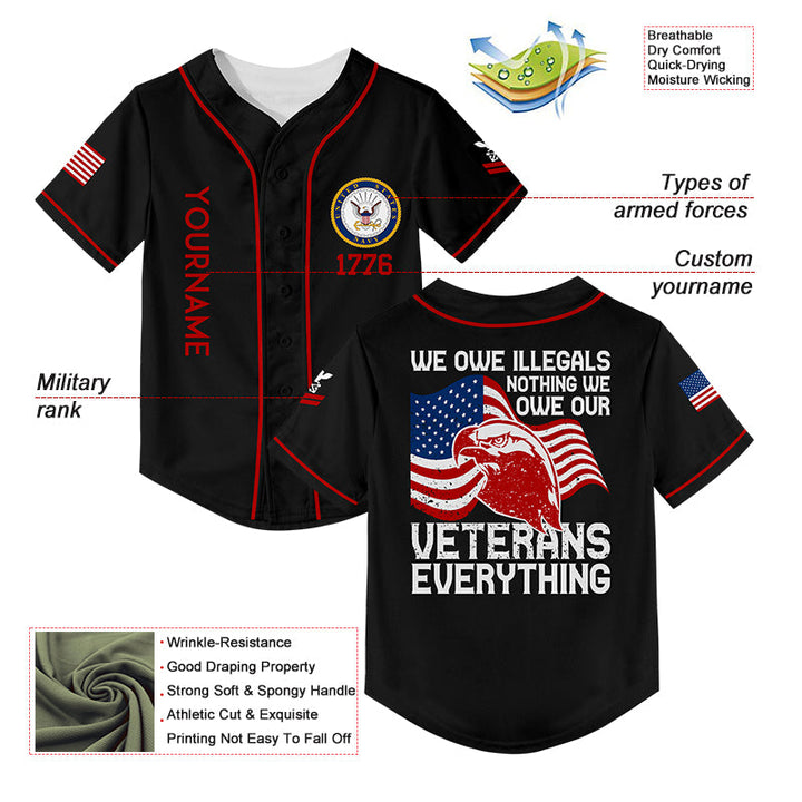 Custom Black We Own Illegals Nothing We Our Veterans Everything 1776 Eagle Flag Military Rank Name Veterans Day Baseball Jersey