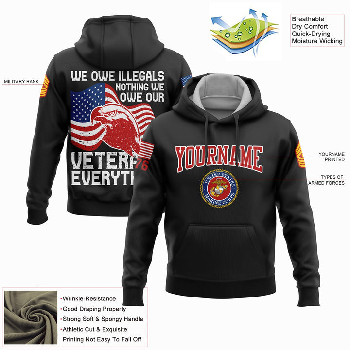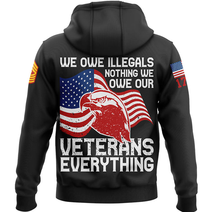 Custom Black We Own Illegals Nothing We Our Veterans Everything 1776 Eagle Flag Military Rank Name Veterans Day Hoodie | Father's Day Gifts