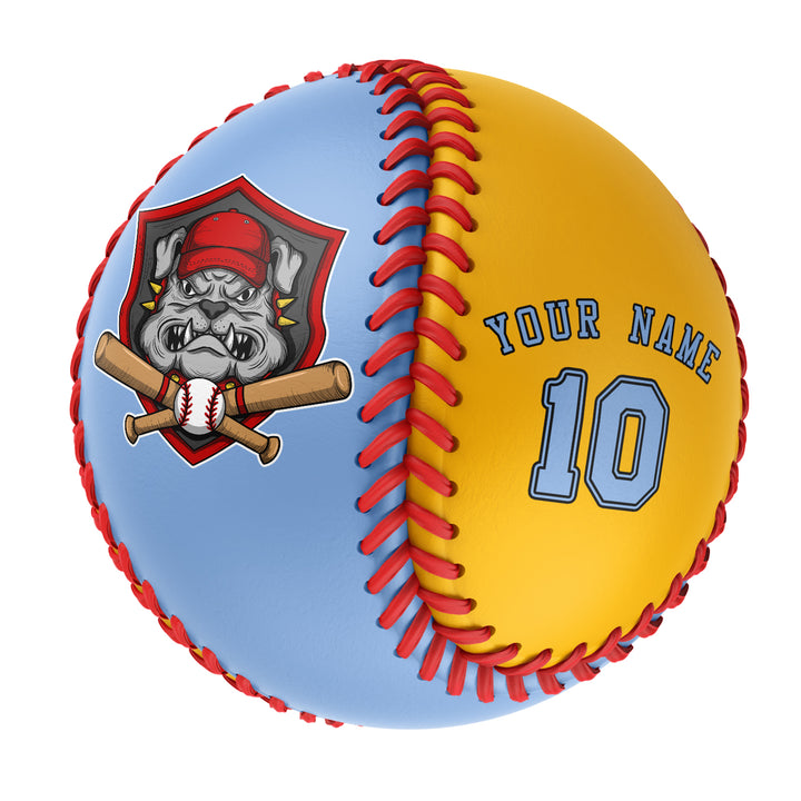 Custom Blue Gold Half Leather Blue Authentic Baseballs