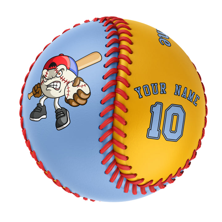 Custom Blue Gold Half Leather Blue Authentic Baseballs