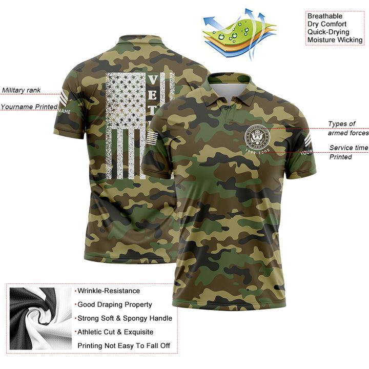 Custom Camo 1776 American Flag U.S. Army Military Sergeant Rank Name Veterans Day Golf Polo Shirt | Father's Day Gifts