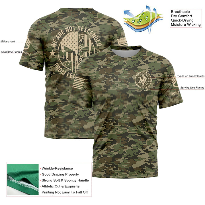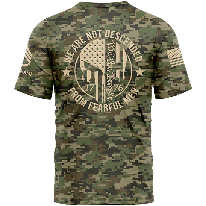 Custom Camo 1776 We Are Not Descended From Fearful Men U.S Army Military Rank Staff sergeant Veteran Name T-Shirt | Father's Day Gifts