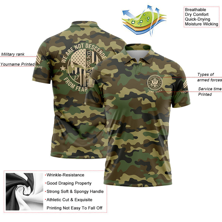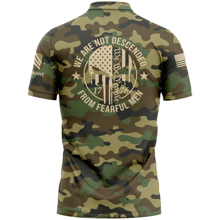 Custom Camo 1776 We Are Not Descended From Fearful Men U.S. Army Military Sergeant Rank Veteran Name Golf Polo Shirt | Father's Day Gifts