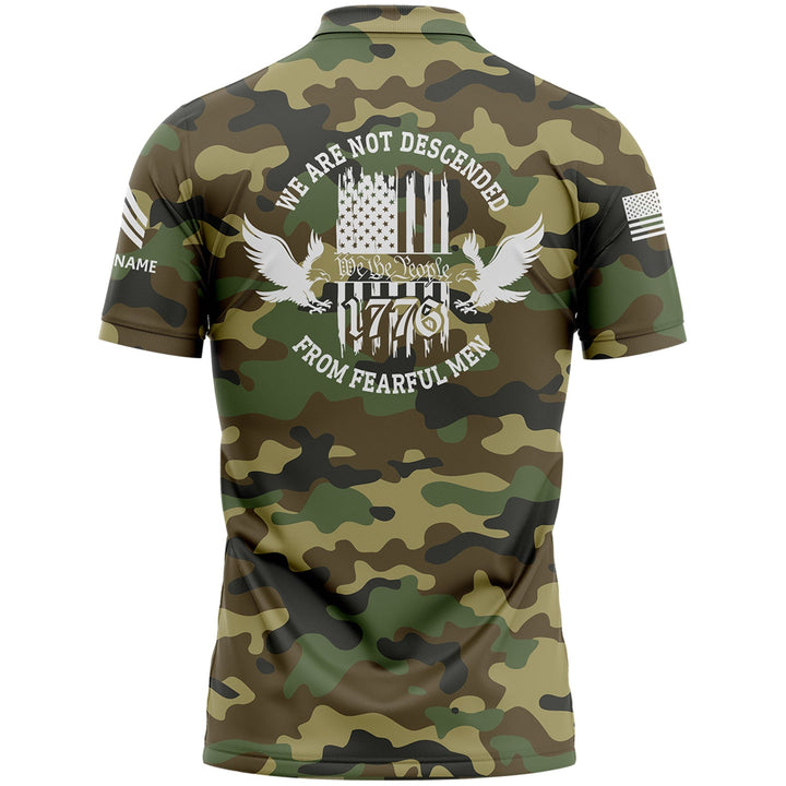 Custom Camo 1776 We Are Not Descended From Fearful Men U.S. Army Military Sergeant Rank Veteran Name Golf Polo Shirt | Father's Day Gifts