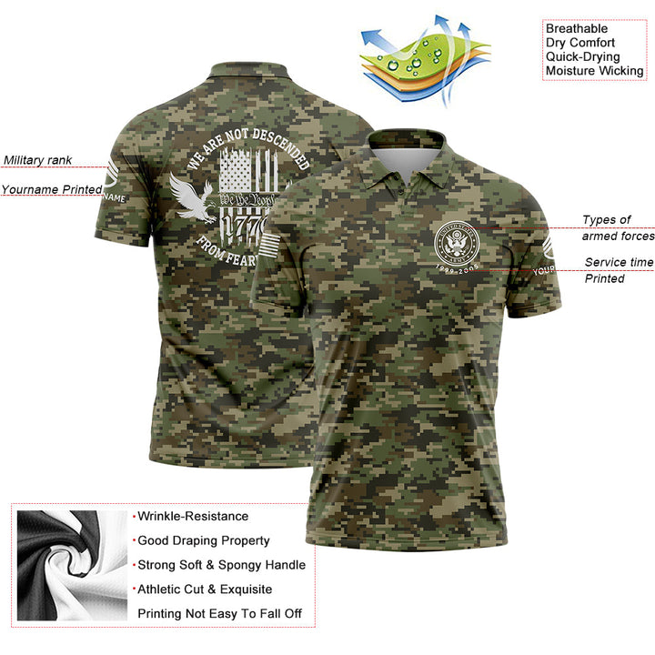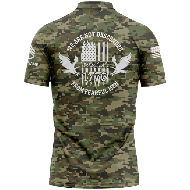 Custom Camo 1776 We Are Not Descended From Fearful Men U.S. Army Military Staff Sergeant Rank Veteran Name Golf Polo Shirt | Father's Day Gifts