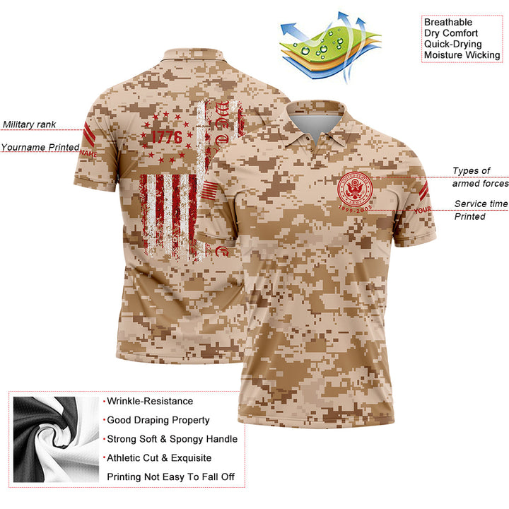 Custom Camo 1776 We The People Freedom American Flag U.S. Army Military Corporal Rank Veteran Name Golf Polo Shirt | Father's Day Gifts