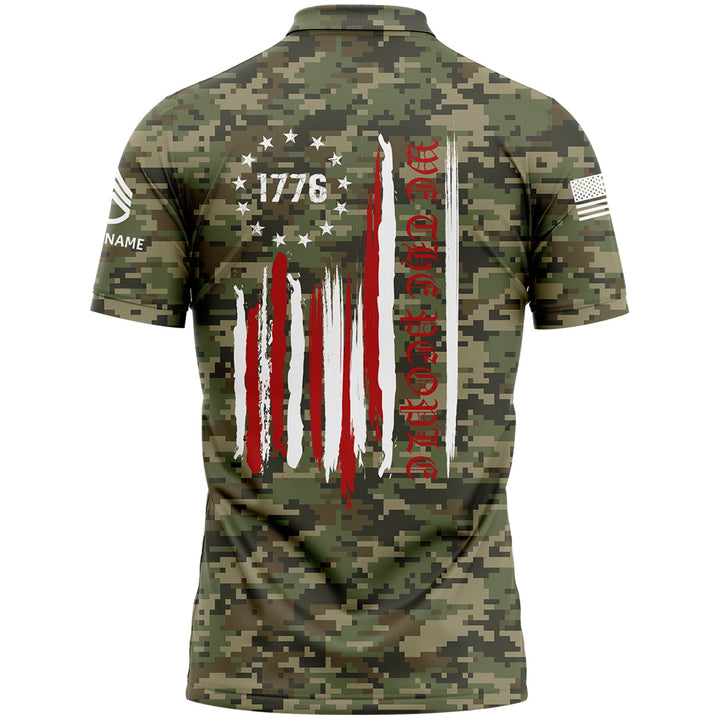 Custom Camo 1776 We The People Freedom American Flag U.S. Army Military Staff Sergeant Rank Veteran Name Golf Polo Shirt | Father's Day Gifts