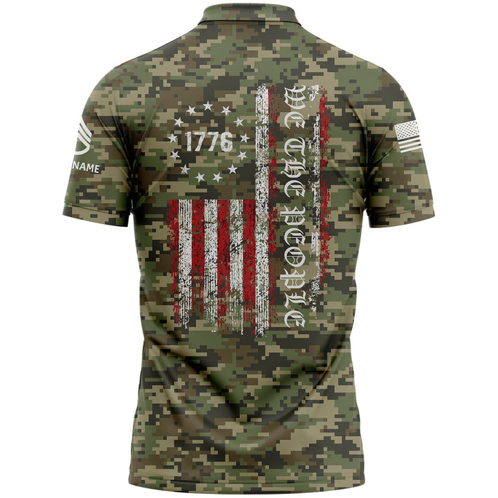 Custom Camo 1776 We The People Freedom American Flag U.S. Army Military Staff Sergeant Rank Veteran Name Golf Polo Shirt | Father's Day Gifts