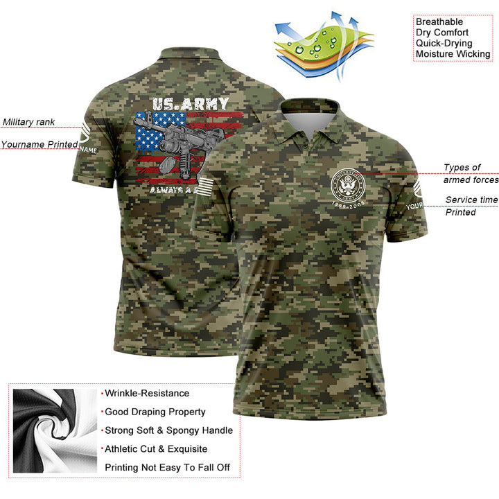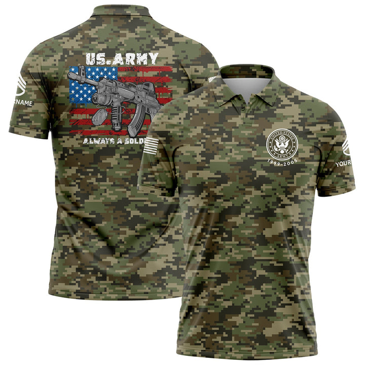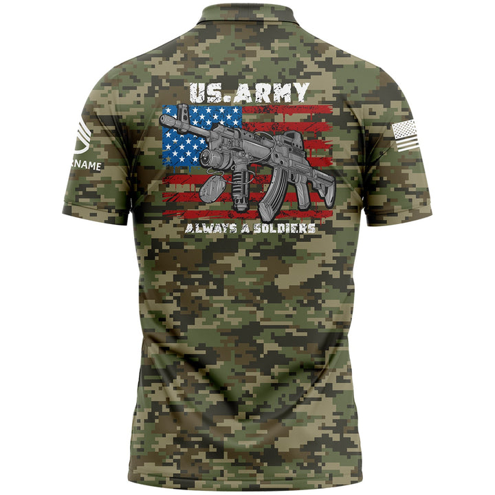 Custom Camo Always A Soldiers American Flag U.S Army Military Staff Sergeant Rank Name Golf Polo Shirt | Father's Day Gifts