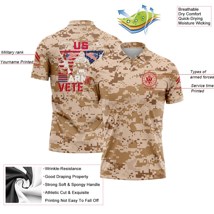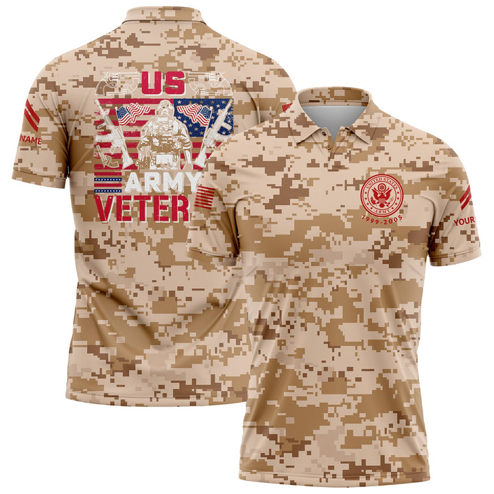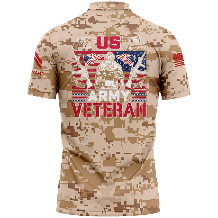 Custom Camo American Flag U.S Army Military Corporal Rank Name Golf Polo Shirt | Father's Day Gifts