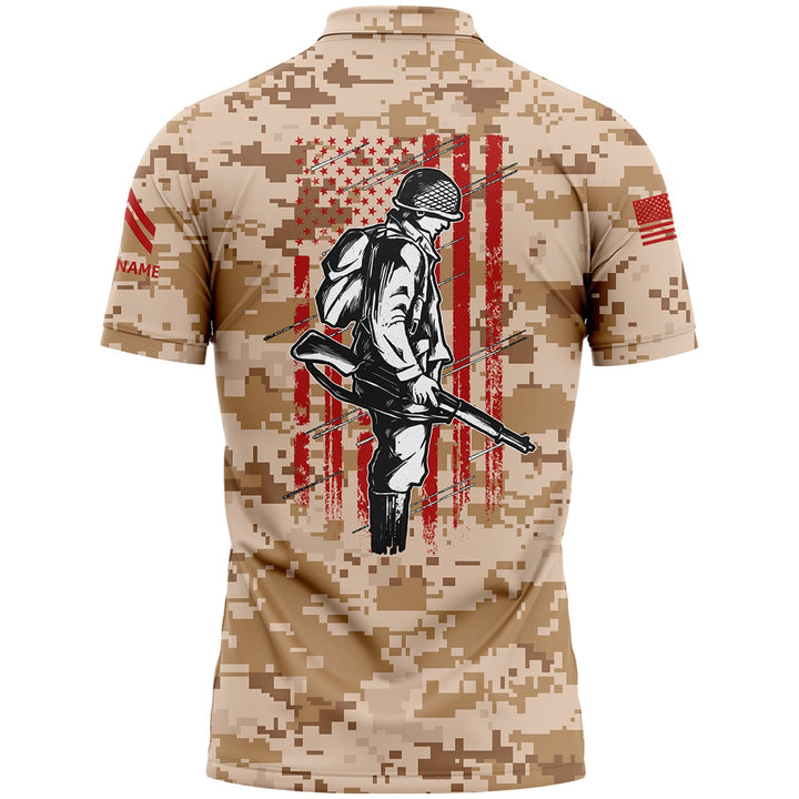 Custom Camo American Flag U.S Army Military Corporal Rank Name Golf Polo Shirt | Father's Day Gifts