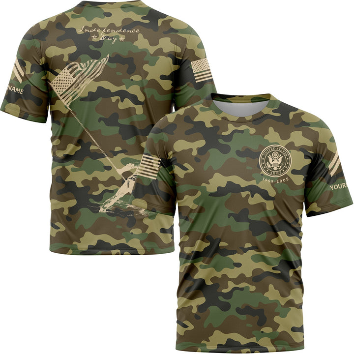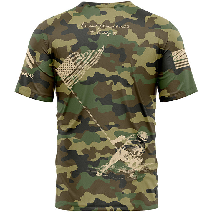 Custom Camo American Flag U.S Army Military Rank Corporal Name Independence Day T-Shirt | Father's Day Gifts