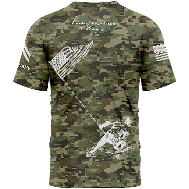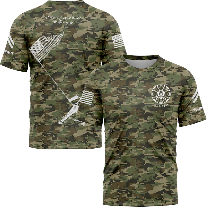 Custom Camo American Flag U.S Army Military Rank Corporal Name Independence Day T-Shirt | Father's Day Gifts