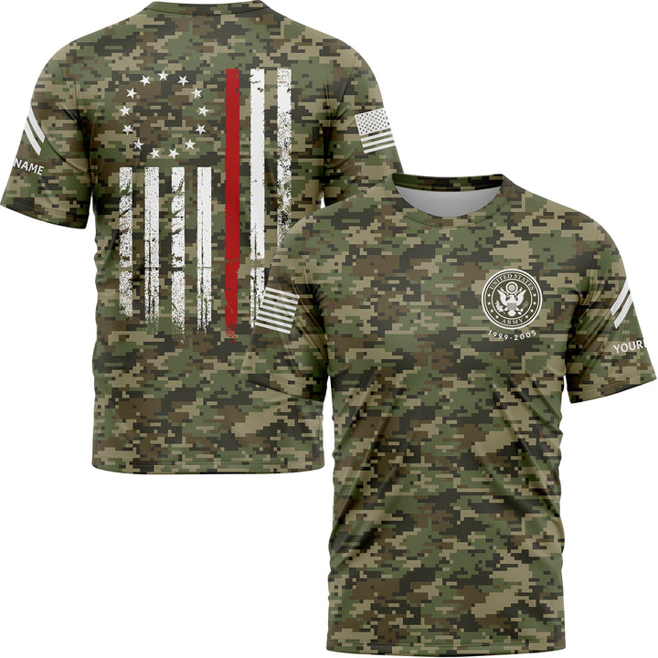 Custom Camo American Flag U.S Army Military Rank Corporal Veteran Name T-Shirt | Father's Day Gifts