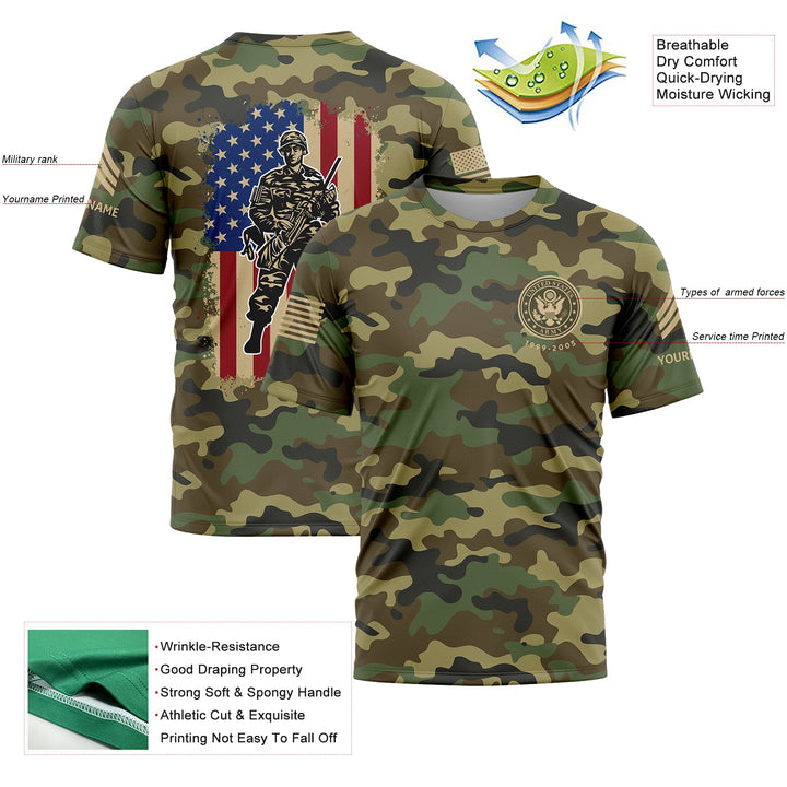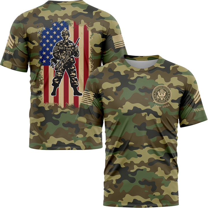 Custom Camo American Flag U.S Army Military Rank Sergeant Name T-Shirt