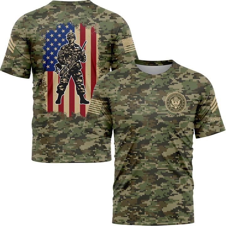 Custom Camo American Flag U.S Army Military Rank Sergeant Name T-Shirt