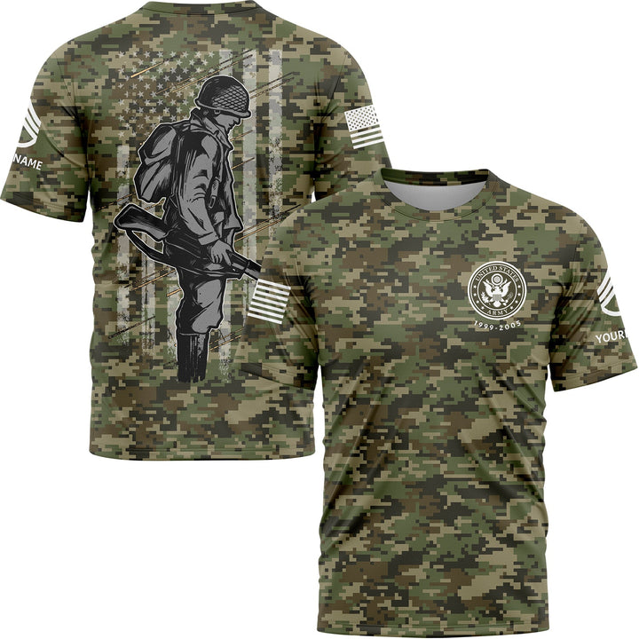 Custom Camo American Flag U.S Army Military Rank Staff sergeant Name T-Shirt