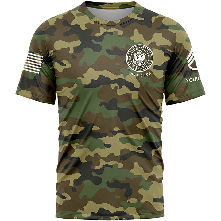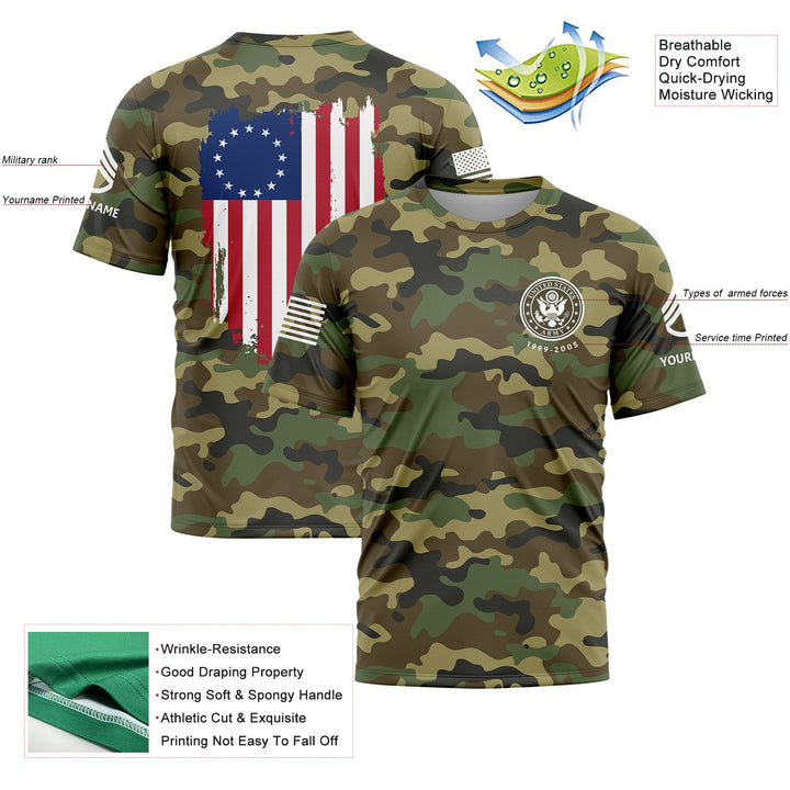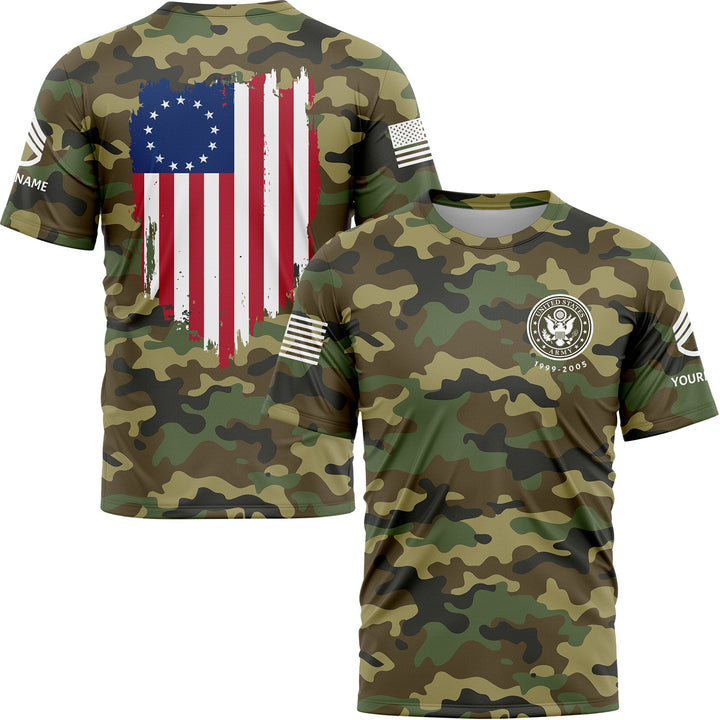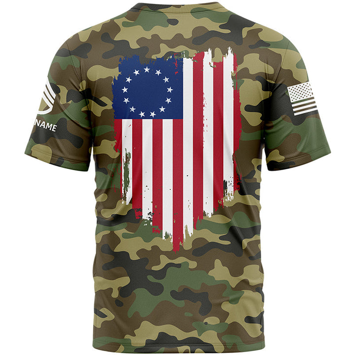 Custom Camo American Flag U.S Army Military Rank Staff sergeant Veteran Name T-Shirt