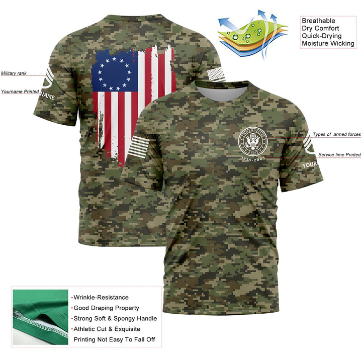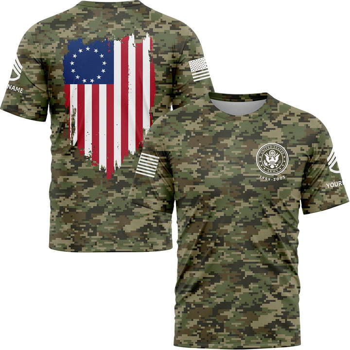 Custom Camo American Flag U.S Army Military Rank Staff sergeant Veteran Name T-Shirt