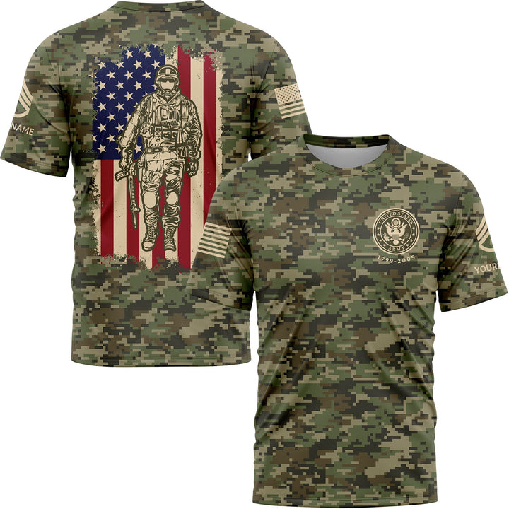 Custom Camo American Flag U.S Army Military Rank Staff sergeant Veteran Name T-Shirt