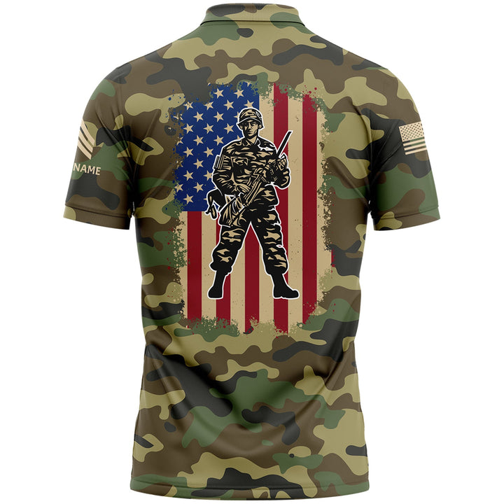 Custom Camo American Flag U.S Army Military Sergeant Rank Name Golf Polo Shirt | Father's Day Gifts