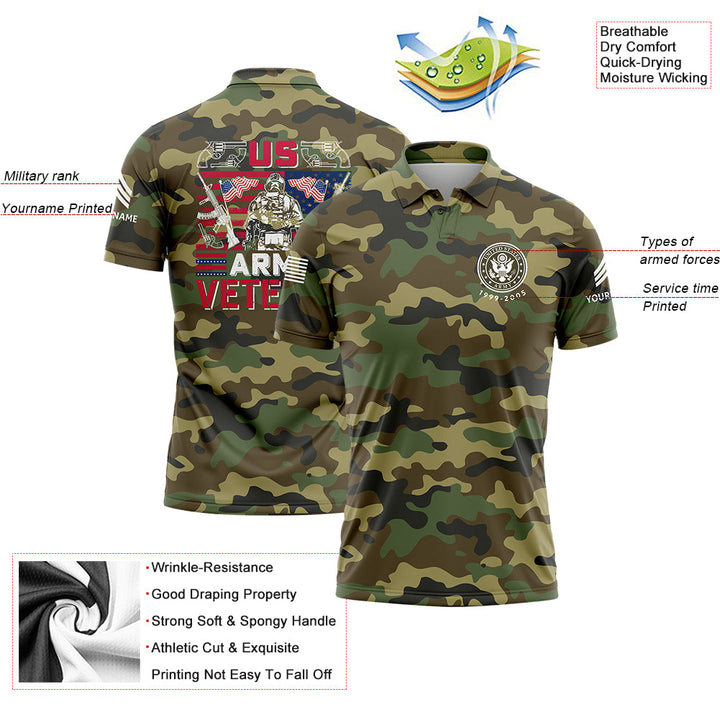 Custom Camo American Flag U.S Army Military Sergeant Rank Name Golf Polo Shirt | Father's Day Gifts
