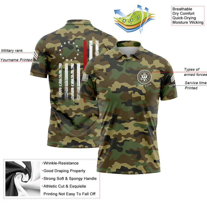 Custom Camo American Flag U.S. Army Military Sergeant Rank Veteran Name Golf Polo Shirt | Father's Day Gifts