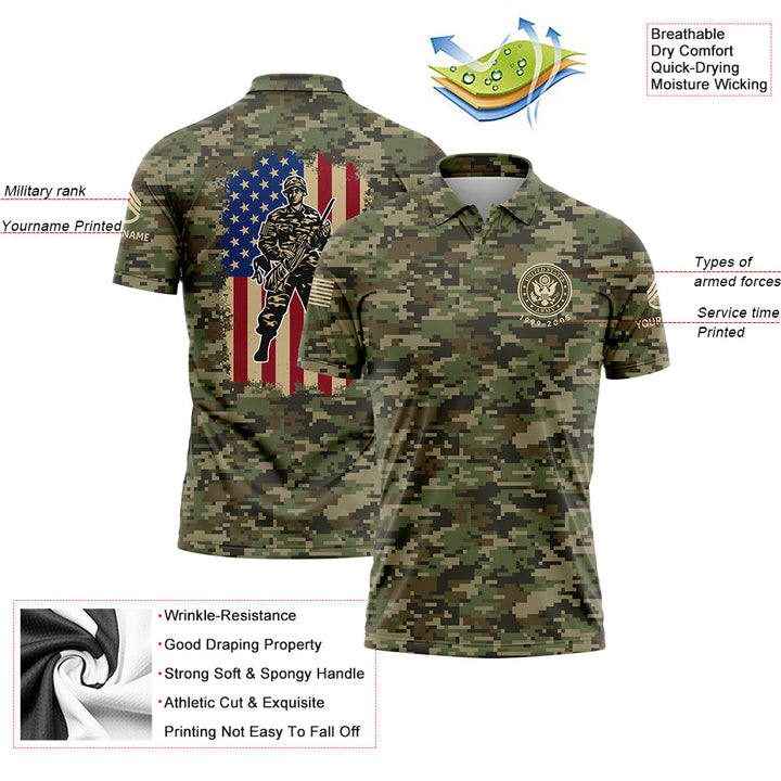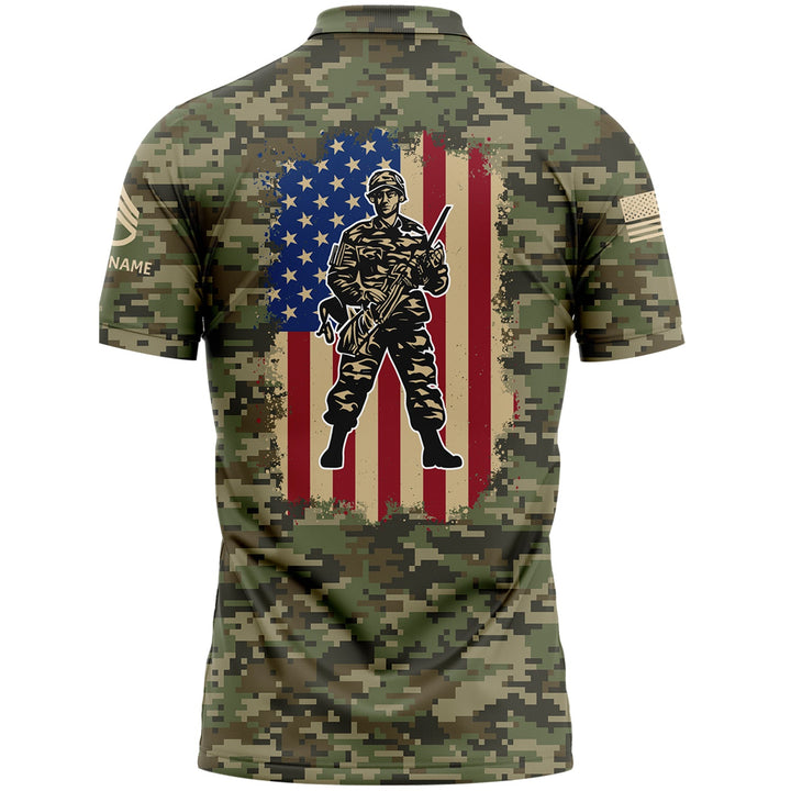 Custom Camo American Flag U.S Army Military Staff Sergeant Rank Name Golf Polo Shirt | Father's Day Gifts