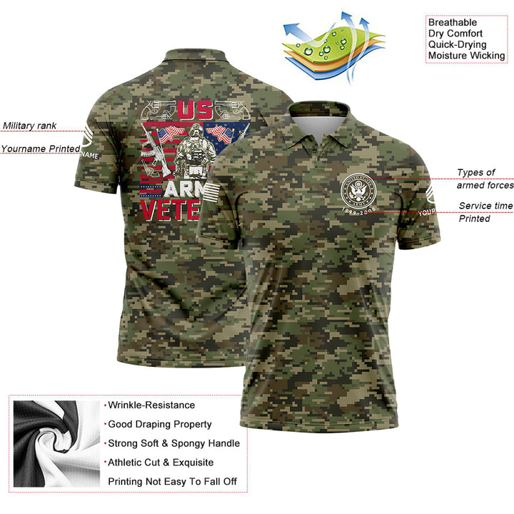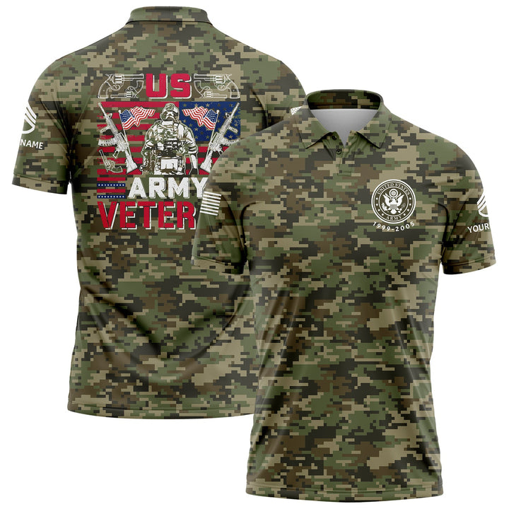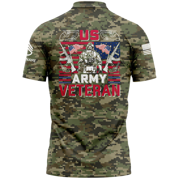 Custom Camo American Flag U.S Army Military Staff Sergeant Rank Name Golf Polo Shirt | Father's Day Gifts