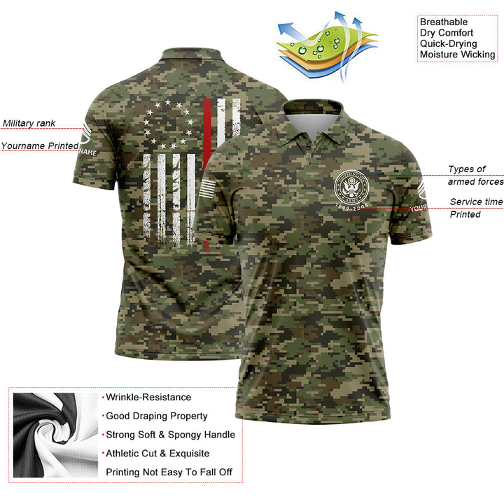Custom Camo American Flag U.S. Army Military Staff Sergeant Rank Veteran Name Golf Polo Shirt | Father's Day Gifts