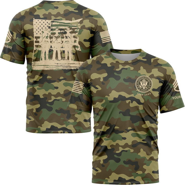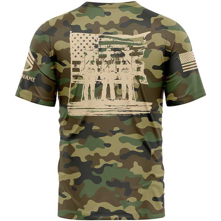 Custom Camo American History Flag U.S Army Military Rank Staff sergeant Name Independence Day T-Shirt | Father's Day Gifts