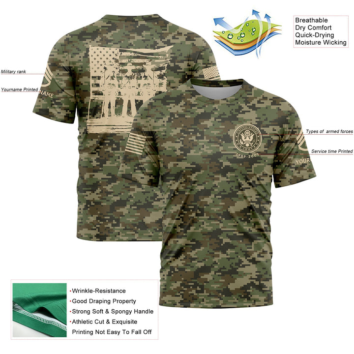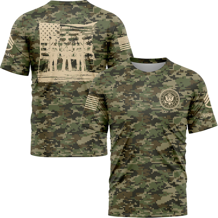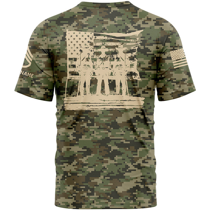 Custom Camo American History Flag U.S Army Military Rank Staff sergeant Name Independence Day T-Shirt | Father's Day Gifts