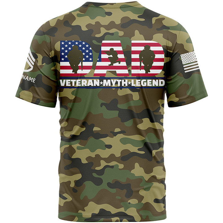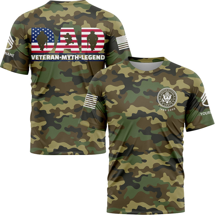 Custom Camo Dad Veteran Myth Legend Flag U.S Army Military Rank Staff sergeant Name Veterans Day T-Shirt | Father's Day Gifts