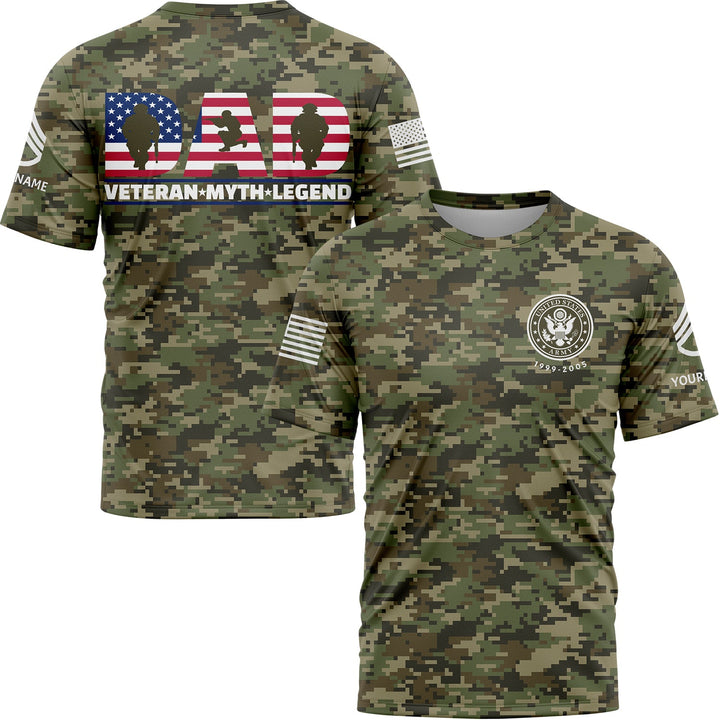 Custom Camo Dad Veteran Myth Legend Flag U.S Army Military Rank Staff sergeant Name Veterans Day T-Shirt | Father's Day Gifts