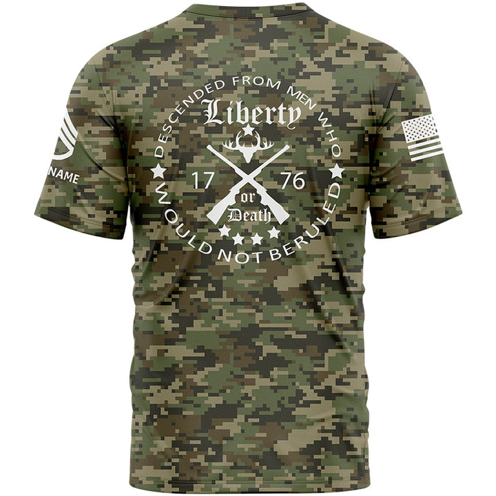 Custom Camo Descended From Men Who Would Not Beruled 1776 U.S Army Military Rank Staff sergeant Veteran Name T-Shirt | Father's Day Gifts