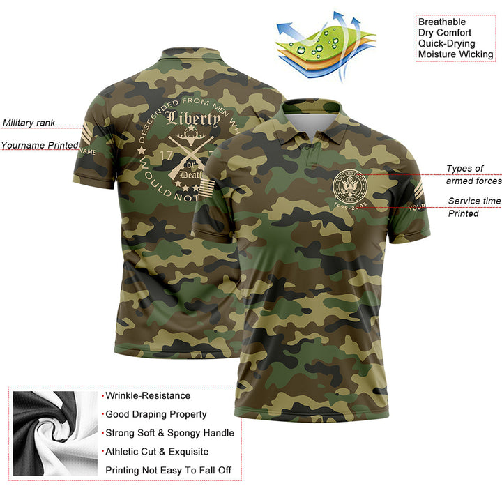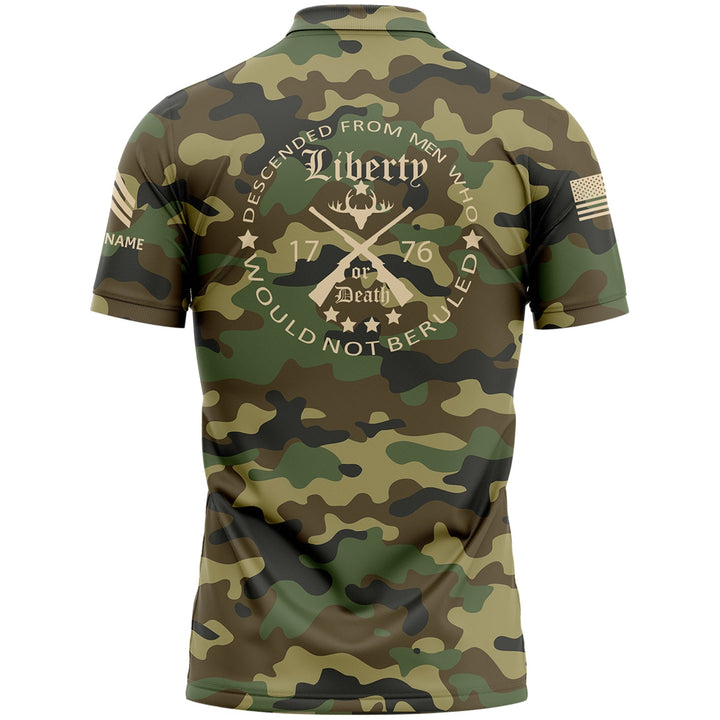 Custom Camo Descended From Men Who Would Not Beruled 1776 U.S. Army Military Sergeant Rank Veteran Name Golf Polo Shirt | Father's Day Gifts