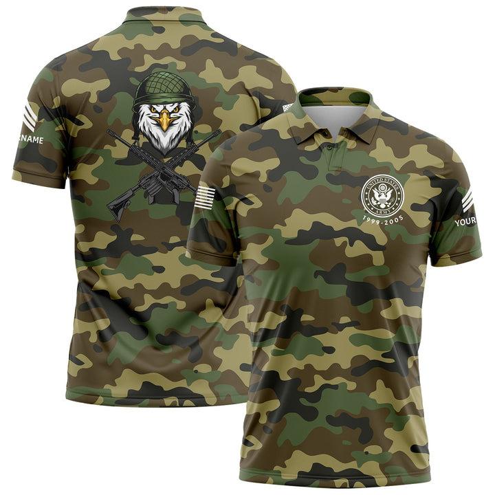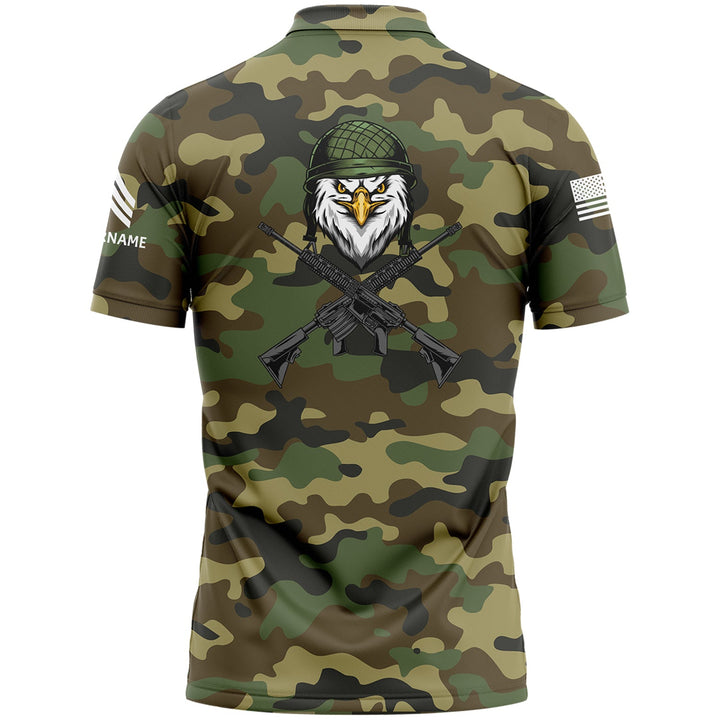Custom Camo Eagle U.S Army Military Sergeant Rank Name Memorial Day Name Golf Polo Shirt | Father's Day Gifts