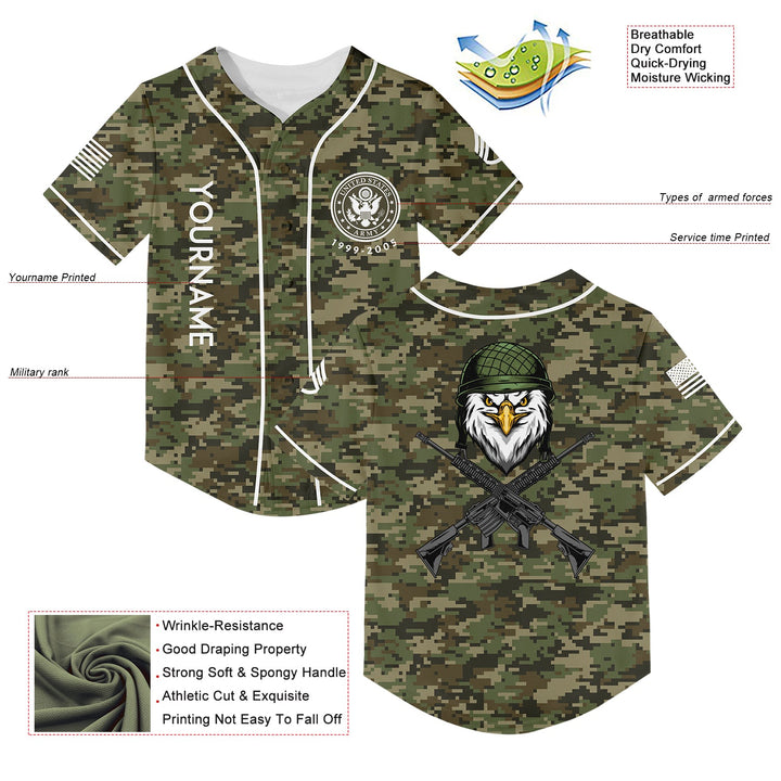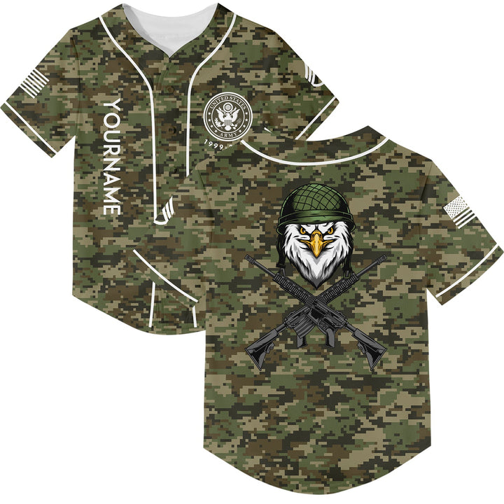 Custom Camo Eagle U.S Army Military Staff Sergeant Rank Name Baseball Jersey | Father's Day Gifts
