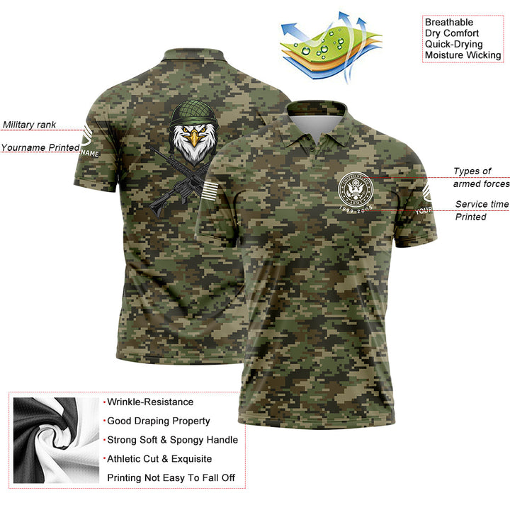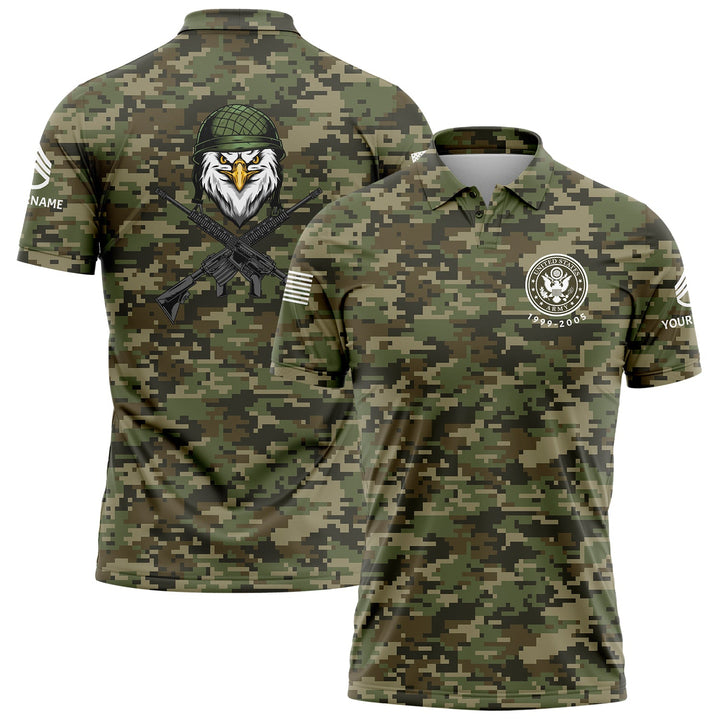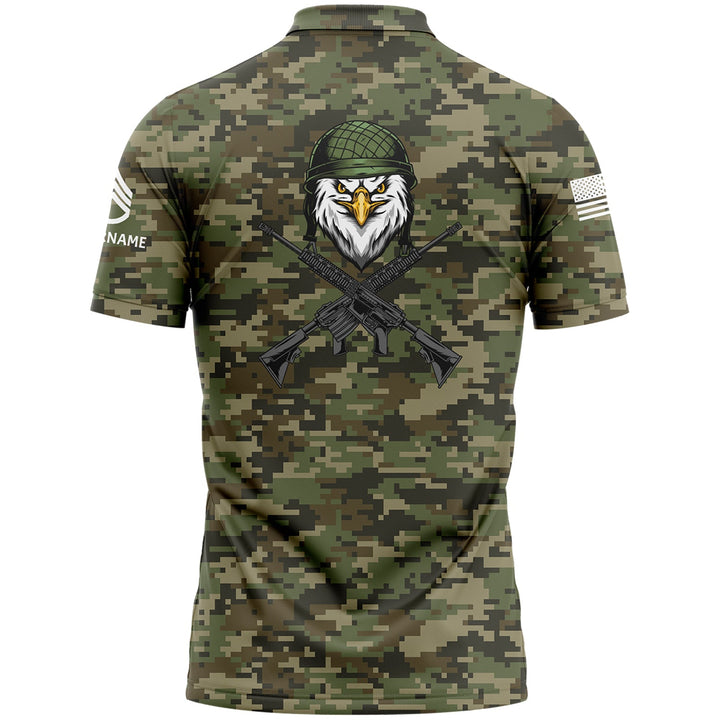 Custom Camo Eagle U.S Army Military Staff Sergeant Rank Name Memorial Day Name Golf Polo Shirt | Father's Day Gifts