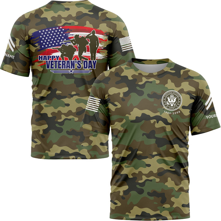 Custom Camo Flag U.S Army Military Rank Corporal Name Veterans Day T-Shirt | Father's Day Gifts