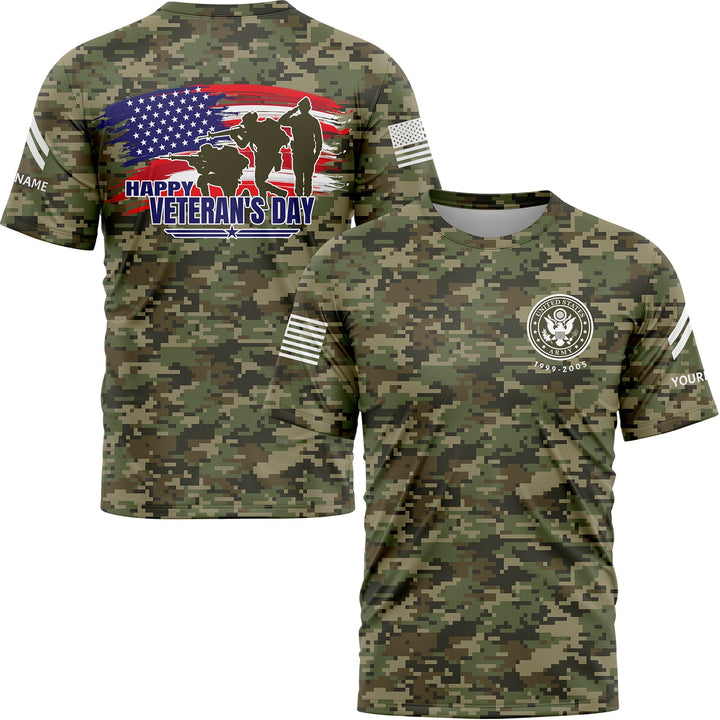 Custom Camo Flag U.S Army Military Rank Corporal Name Veterans Day T-Shirt | Father's Day Gifts