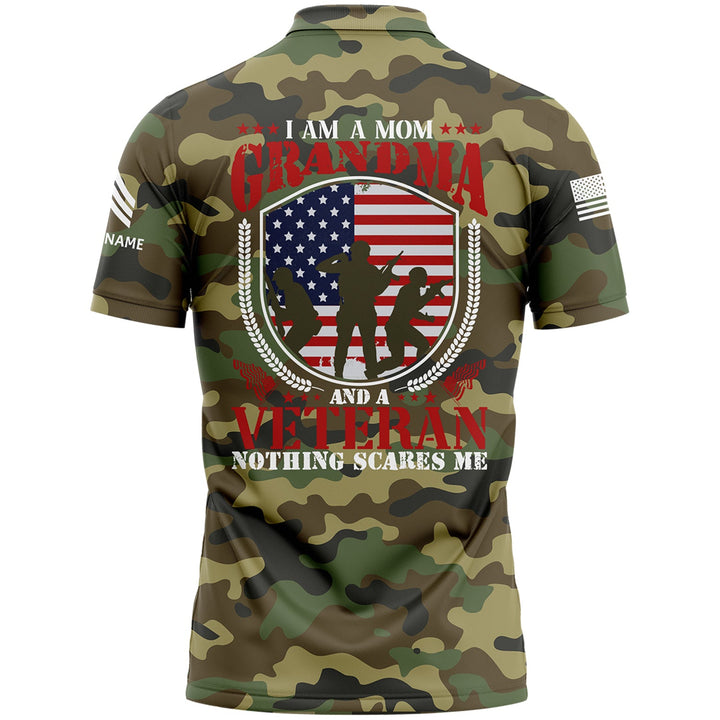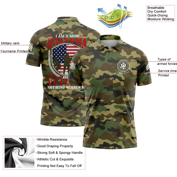 Custom Camo I'm A Mom Grandma Flag U.S Army Military Sergeant Rank Name Veterans Day Golf Polo Shirt | Father's Day Gifts