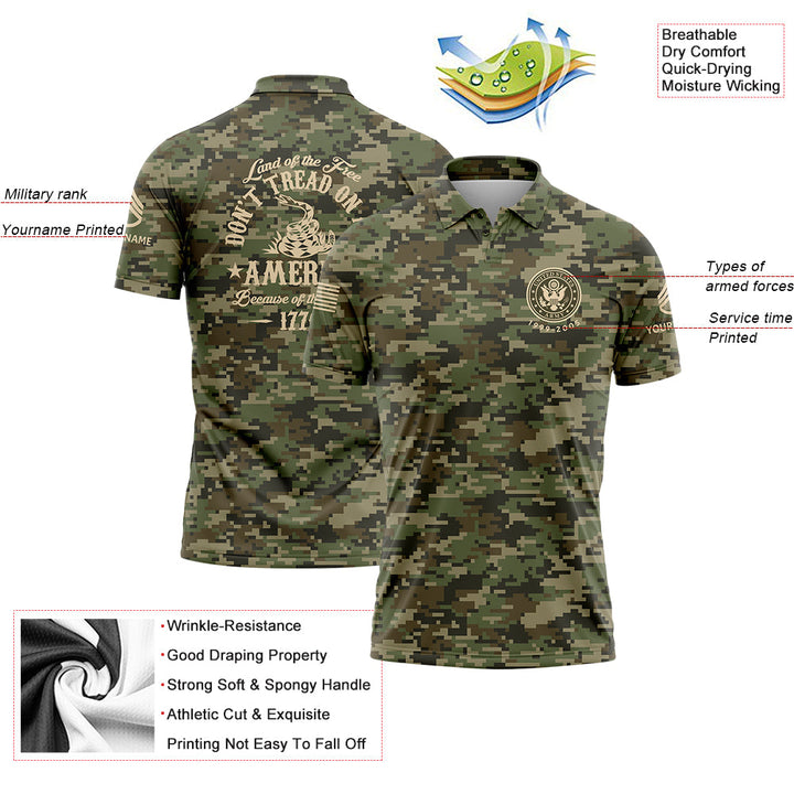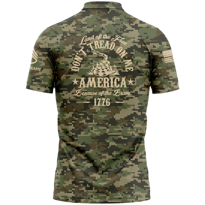 Custom Camo Land OF The Free Don't Tread On Me America Because Of The Brave 1776 U.S. Army Military Staff Sergeant Rank Veteran Name Golf Polo Shirt | Father's Day Gifts